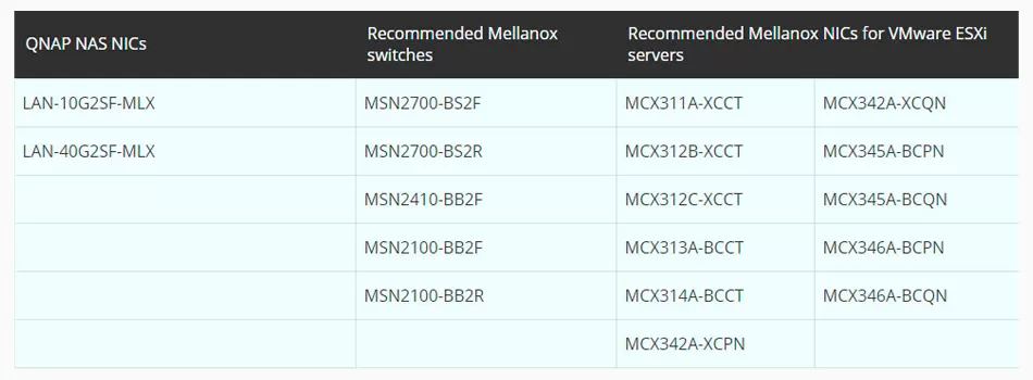 A QNAP, em parceria com a Mellanox®, integrou suporte iSER em modelos de NAS baseados em Intel ou AMD com QTS 4.3.3 ou superior. A ativação do iSER exige a instalação de NICs compatíveis nos servidores NAS e VMware ESXi, operando em redes de 10GbE ou 40GbE.
