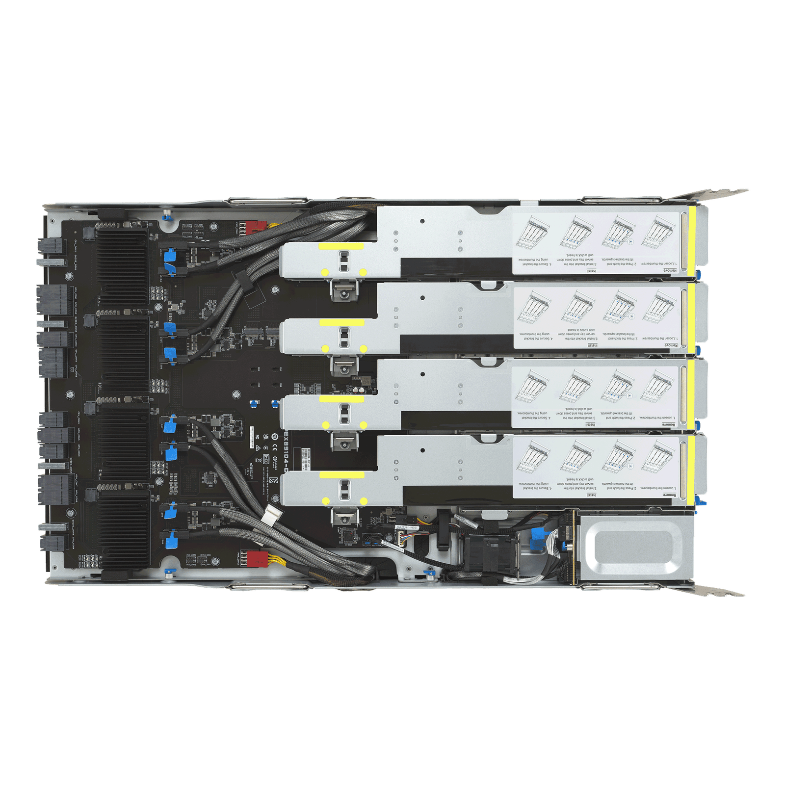 Com largura de banda de até 6 TB/s e 256 GB de HBM integrada às GPUs, o servidor proporciona resposta imediata para inferência, simulação científica e workloads massivos. Além disso, sua arquitetura de um-para-um entre GPU e NIC assegura throughput máximo de 896 GB/s, ideal para data centers e clusters de IA distribuídos.