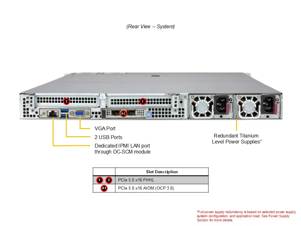 2 slots PCIe 5.0 x16 FHHL + 1 slot PCIe 5.0 x16 AIOM