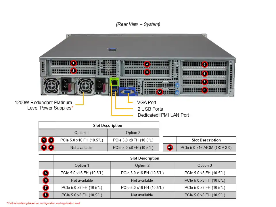 Vem com 1 slot AIOM para placas de rede de alta velocidade compatíveis com OCP NIC 3.0 e 1 porta BMC 1GbE.