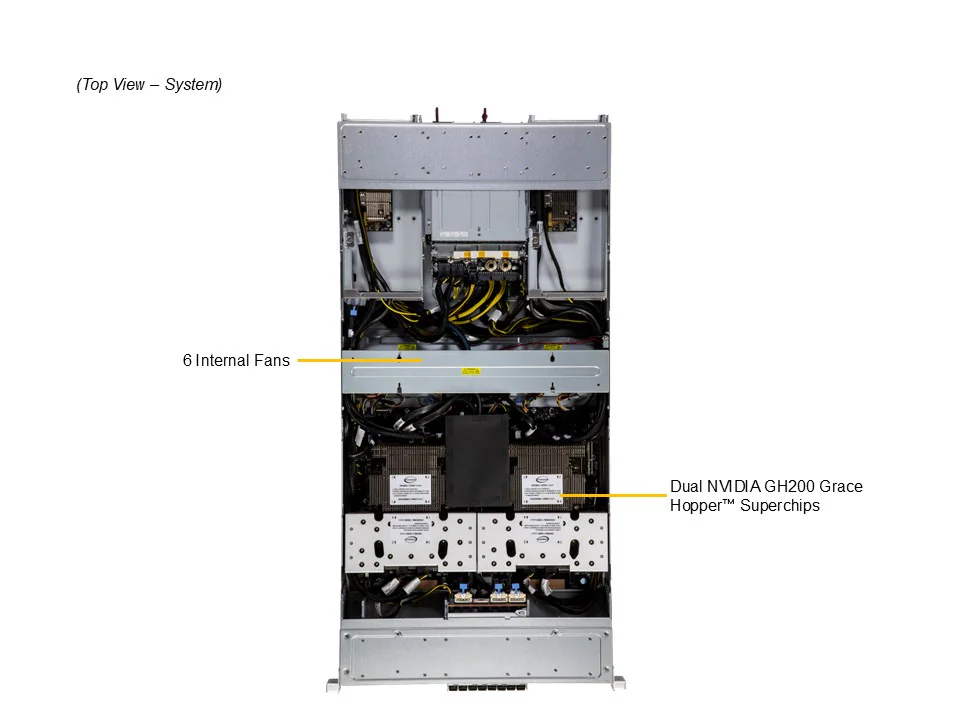 Suporta 2 GPUs NVIDIA H100 Tensor Core integradas diretamente ao GH200 Superchip.