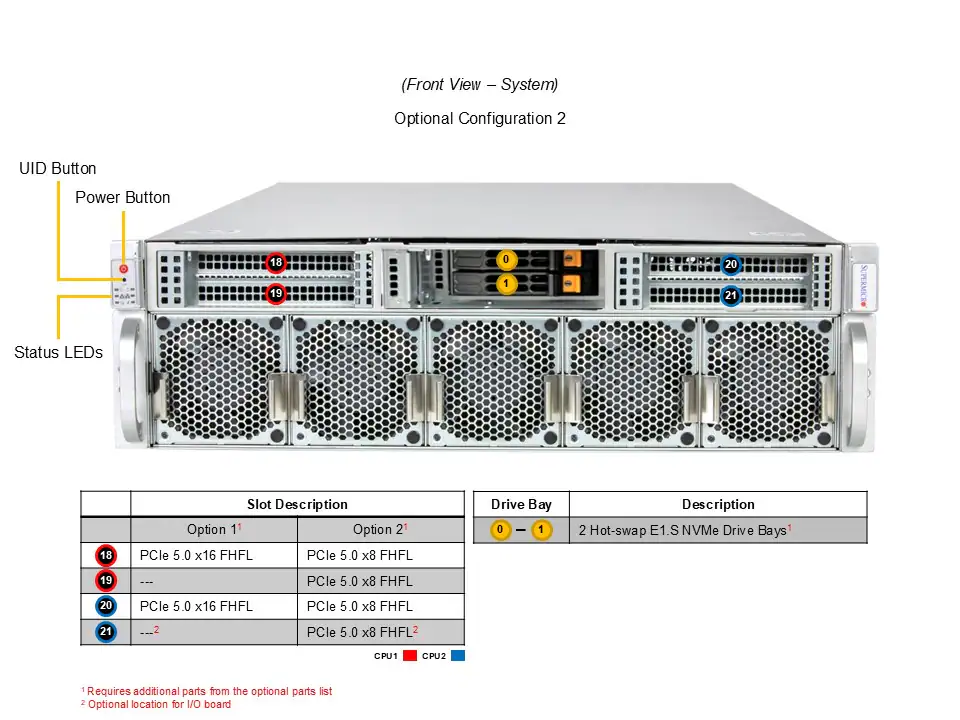 • Armazenamento: 2–14 hot-swap NVMe E1.S/2.5″, 2x M.2 NVMe