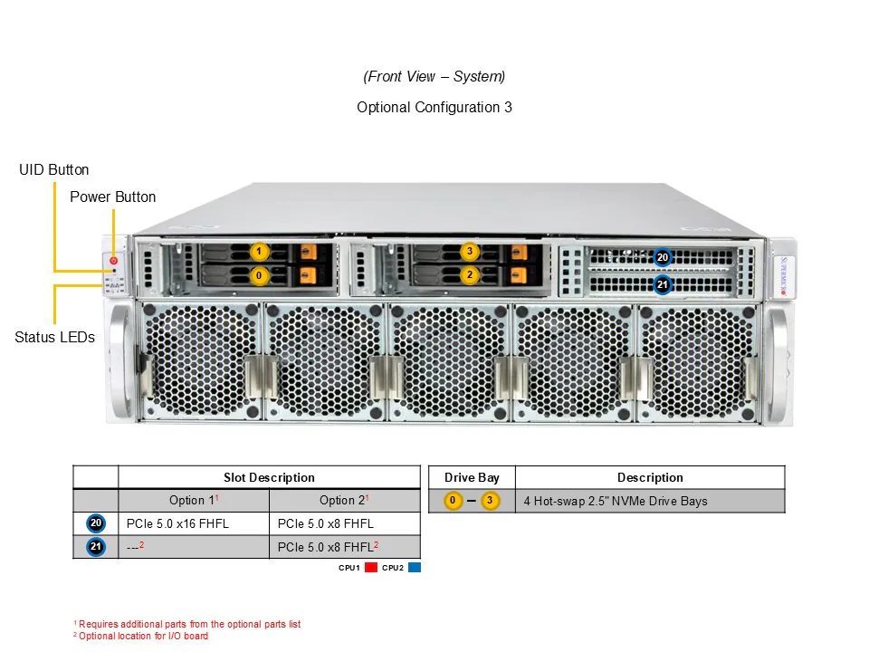 • Hot-swap NVMe 2.5″: 2/4/6 bays