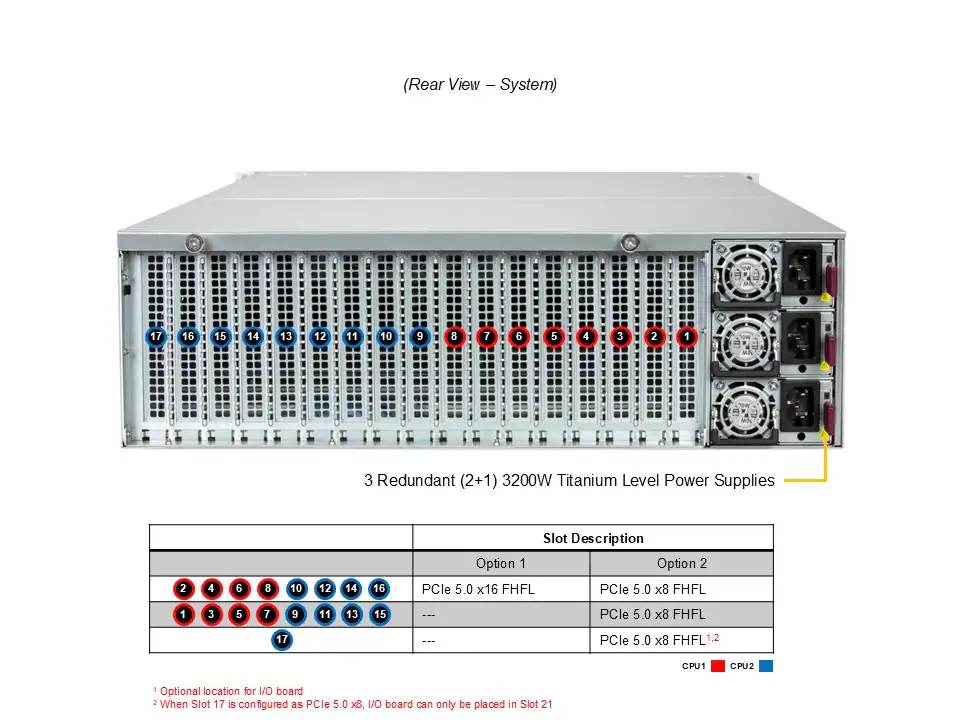 Suporta até 8 GPUs double-width ou 19 GPUs single-width NVIDIA H100 NVL, H200 NVL e RTX PRO 6000.