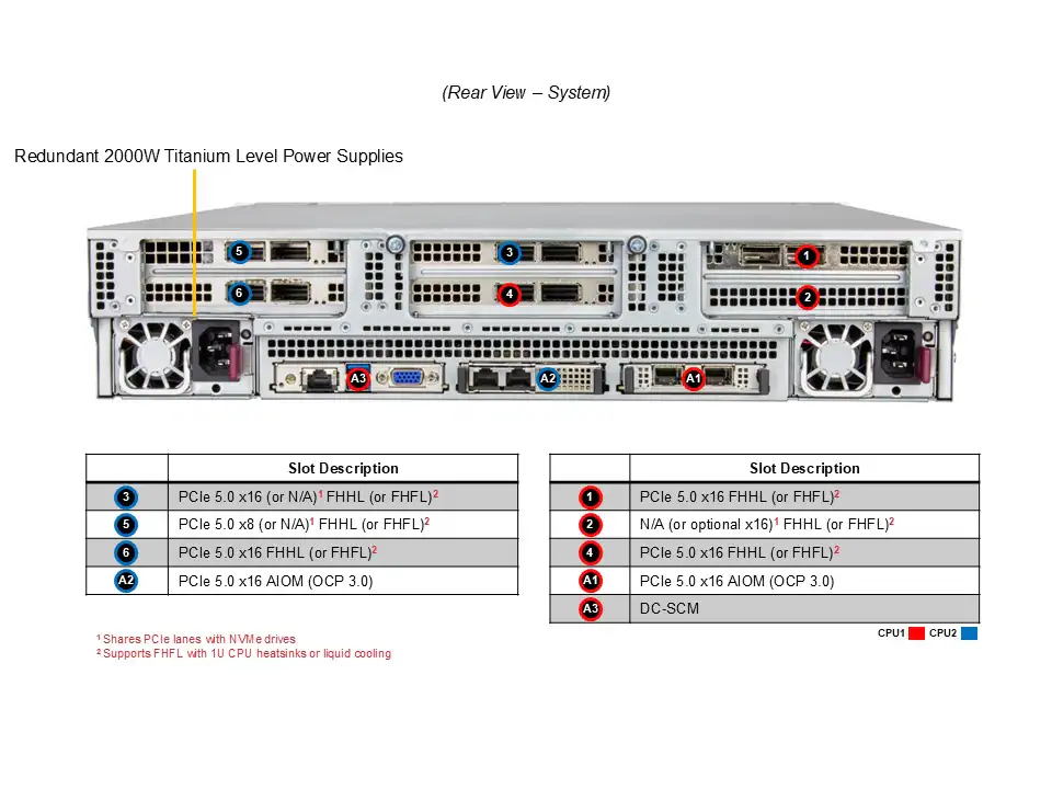 Alta densidade de armazenamento NVMe, grande capacidade de RAM, expansão GPU, e gerenciamento avançado com OpenBMC.