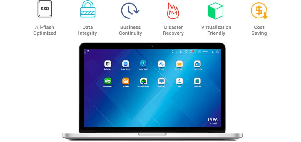 O QES 2.1.0, baseado em FreeBSD, traz o ZFS como fundação para integridade, snapshots e serviços de dados. Recursos como snapshots quase ilimitados, SnapSync, deduplicação e QoS promovem consistência e governança técnica do armazenamento primário. A curva de aprendizagem é suavizada pela continuidade de experiência do ecossistema QTS.