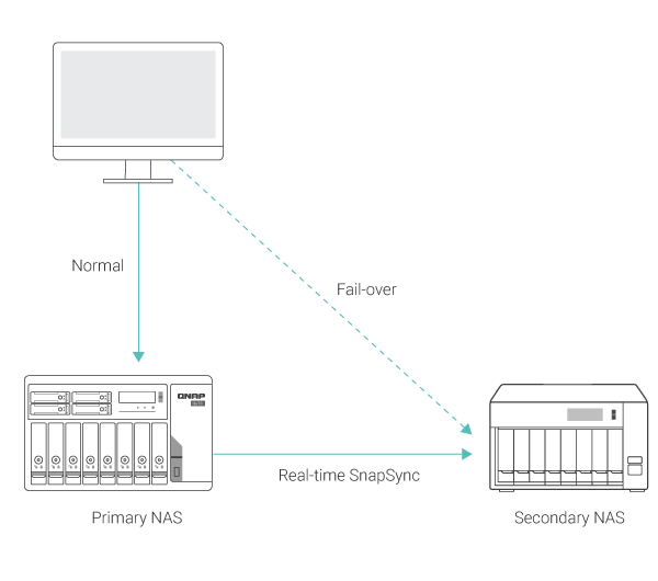O SnapSync em tempo real minimiza RPO ao replicar gravações para um NAS secundário no momento em que os dados são escritos. Para operações críticas, isso reduz risco de perda de dados entre checkpoints.