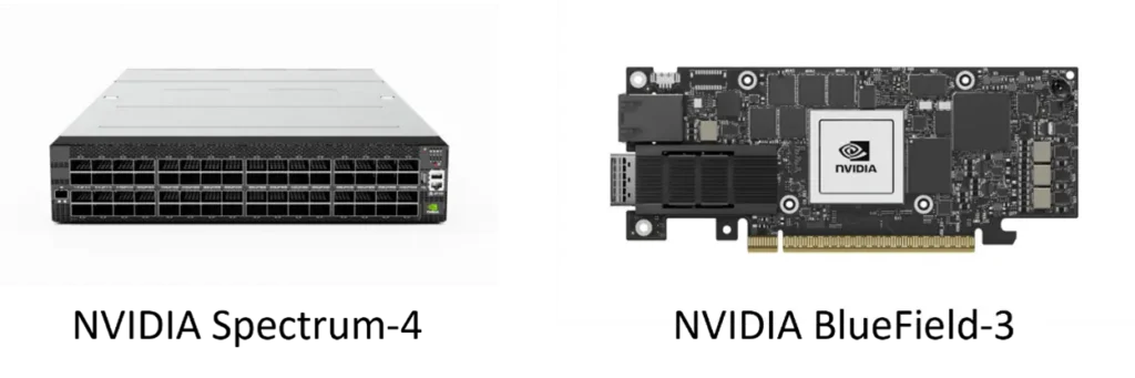 A solução NVIDIA Spectrum-X combina duas tecnologias centrais: o switch NVIDIA Spectrum-4 e a SuperNIC NVIDIA BlueField-3. Essa combinação forma a base de uma rede Ethernet de alto desempenho, com suporte total a padrões abertos e interoperabilidade com arquiteturas existentes.